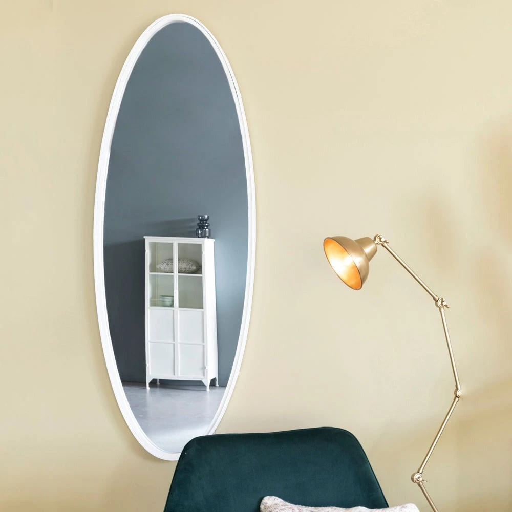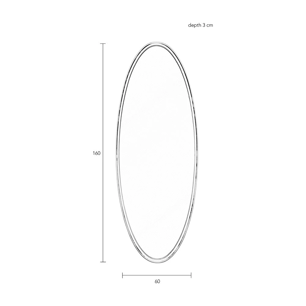 The elegant simplicity of the Mia Large Oval Wall Mirror from the Nordic Living collection is sure to impress. Measuring 160 cm in height combined with a width of 60 cm and depth of 3 cm, this mirror will look beautiful as a focal point in your hallway, bedroom or bathroom and will add light, space and reflection to a smaller room.